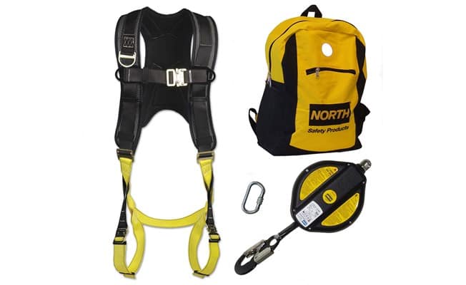 Veiligheidsharnas met valstopapparaat. deze vangt u op zodra de kabel te snel afrolt, zoals een autogordel.